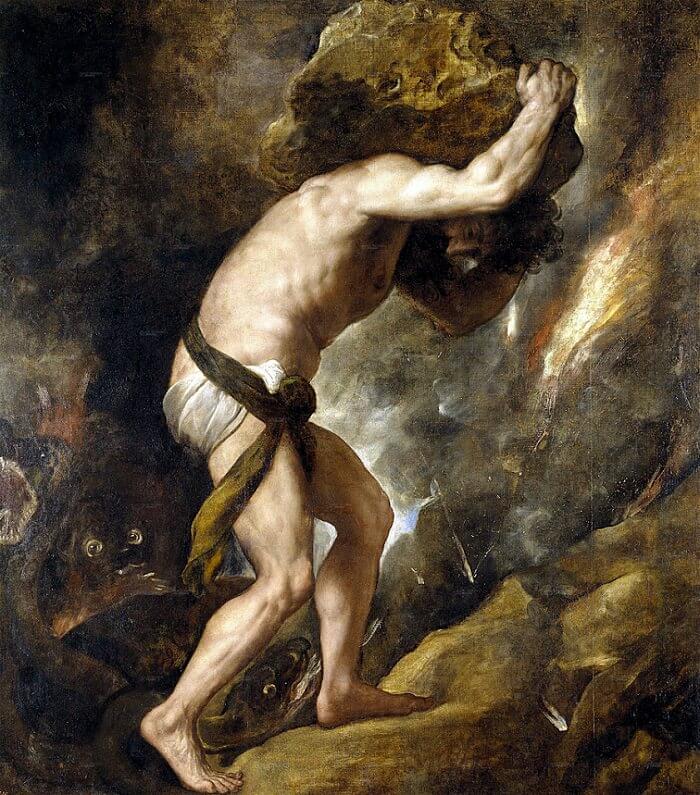 Camus uses the metaphor of Sisyphus to outline the absurdity of life. A man who must endlessly push a boulder up a mountain, until he becomes tired, and it rolls backwards.